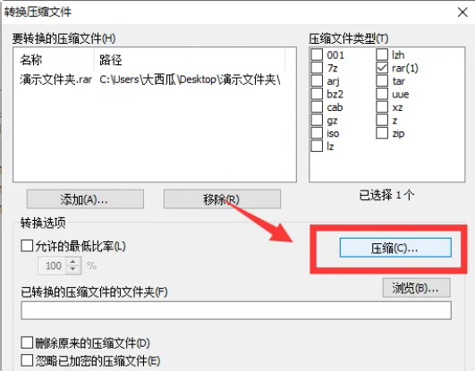 2、打开之后,点击如图所示“压缩…”按钮进入压缩页面: